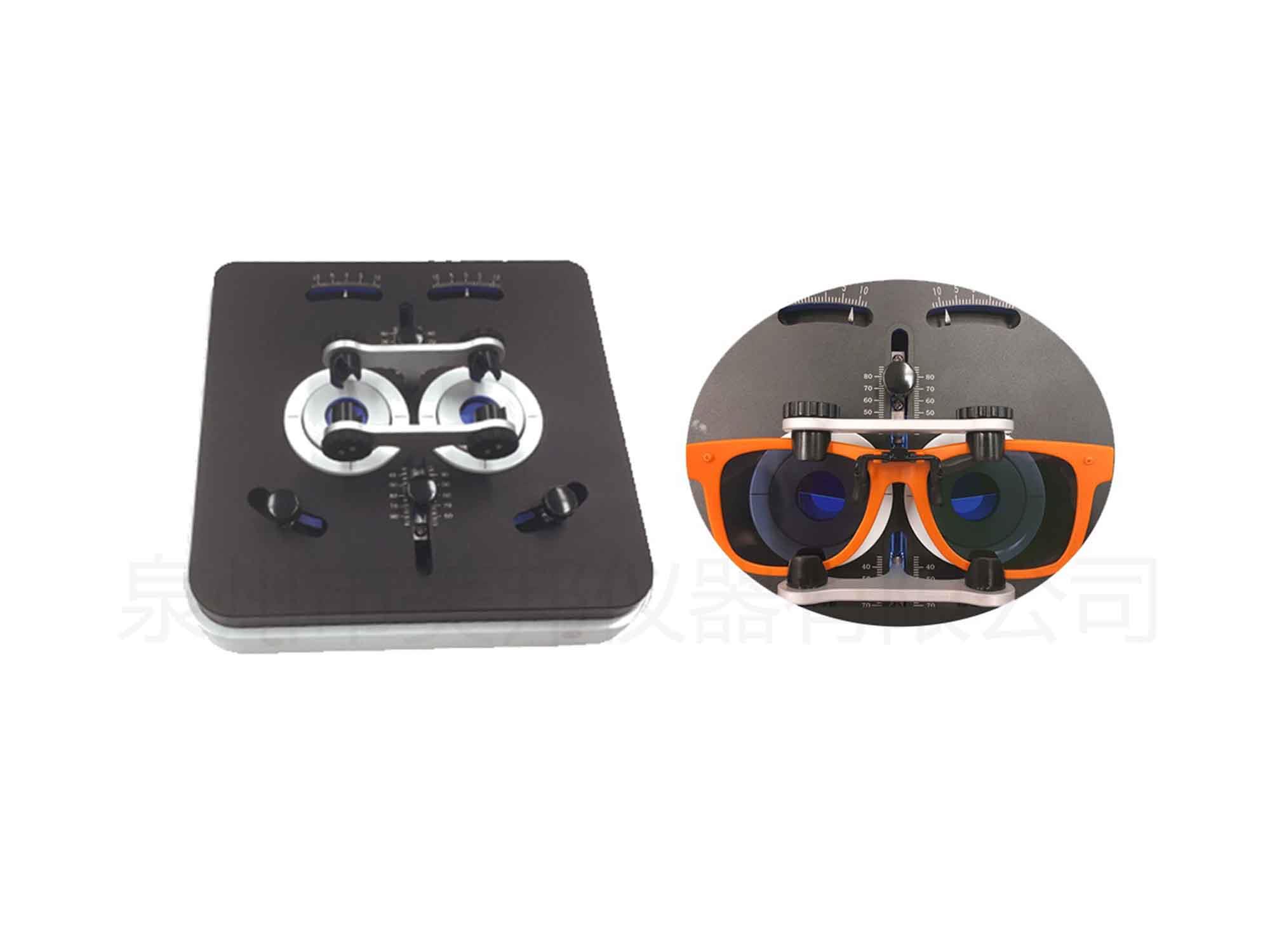 偏振軸位測(cè)試儀是根據(jù)國(guó)家標(biāo)準(zhǔn)GB 10810.3和QB 2659-2004機(jī)動(dòng)車駕駛員專用眼鏡偏振光鏡片的偏振方向測(cè)試要求設(shè)計(jì)的試驗(yàn)用儀器;該儀器是將一對(duì)偏振片切割成其偏振方向與水平方向的夾角分別為±3°,然后組成分視區(qū)偏振器的上下半面,貼合在玻璃片上,組成半蔭式偏振片,測(cè)量眼鏡片的偏振方向,用于測(cè)定偏振鏡片的軸位偏差。