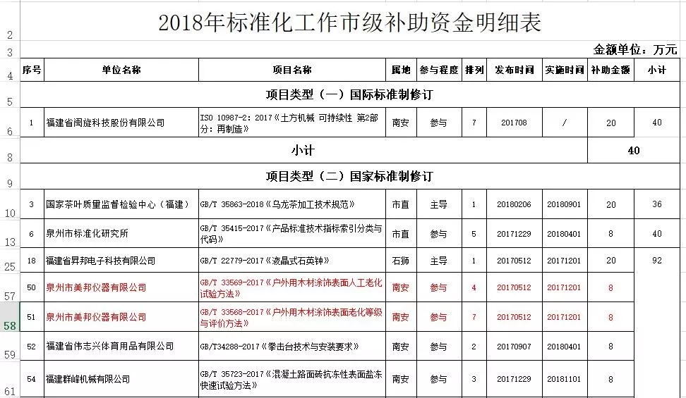 由我司參與起草的GB/T 33569-2017《戶外用木材涂飾表面人工老化試驗(yàn)方法》、GB/T 33568-2017《戶外用木材涂飾表面老化等級(jí)與評(píng)價(jià)方法》獲得泉州市“2018年標(biāo)準(zhǔn)化工作市級(jí)補(bǔ)助資金”共計(jì)16萬(wàn)元。