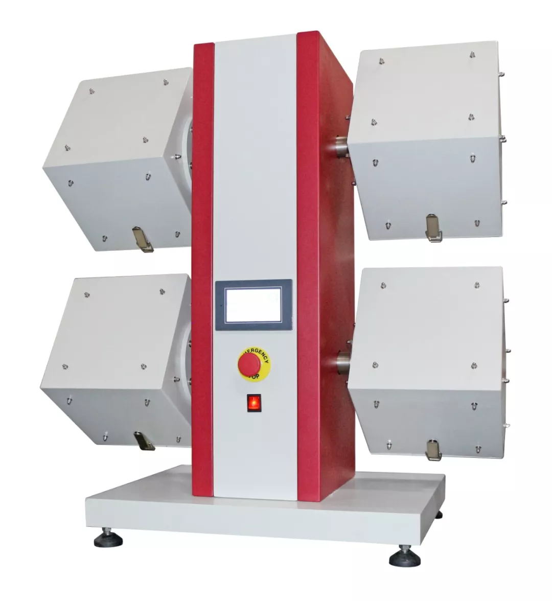 測(cè)試原理:安裝在聚氨酯管上的試樣,在具有恒定轉(zhuǎn)速、襯有軟木的木箱內(nèi)任意翻轉(zhuǎn)。經(jīng)過(guò)規(guī)定的翻轉(zhuǎn)次數(shù)后,對(duì)起毛和(或)起球性能進(jìn)行視覺(jué)描述評(píng)定。一般粗紡織物翻轉(zhuǎn)7200轉(zhuǎn),精紡織物翻轉(zhuǎn)14400轉(zhuǎn)。