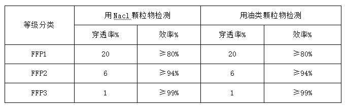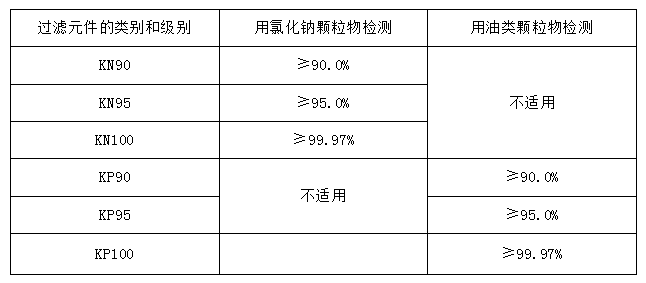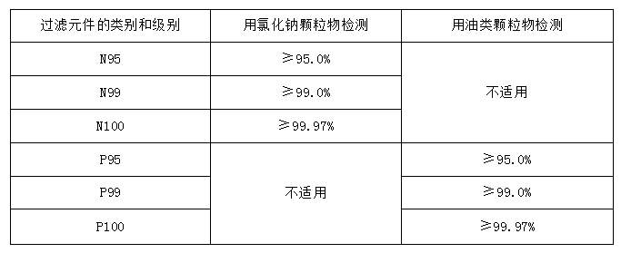 表 5 GB19083-2010 口罩的過(guò)濾效率級(jí)別及要求