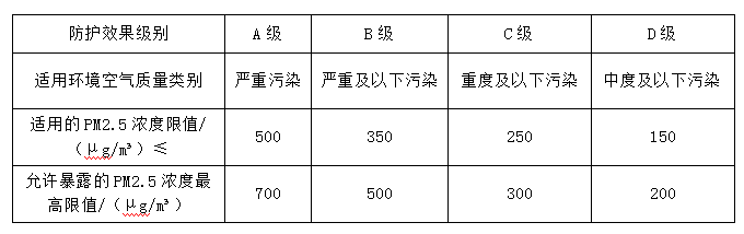 表9 GB/T 32610-2016 口罩適用的環(huán)境空氣質(zhì)量