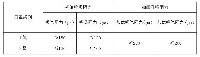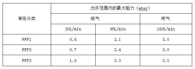 表 14 EN149 標(biāo)準(zhǔn) 口罩的呼吸阻力要求