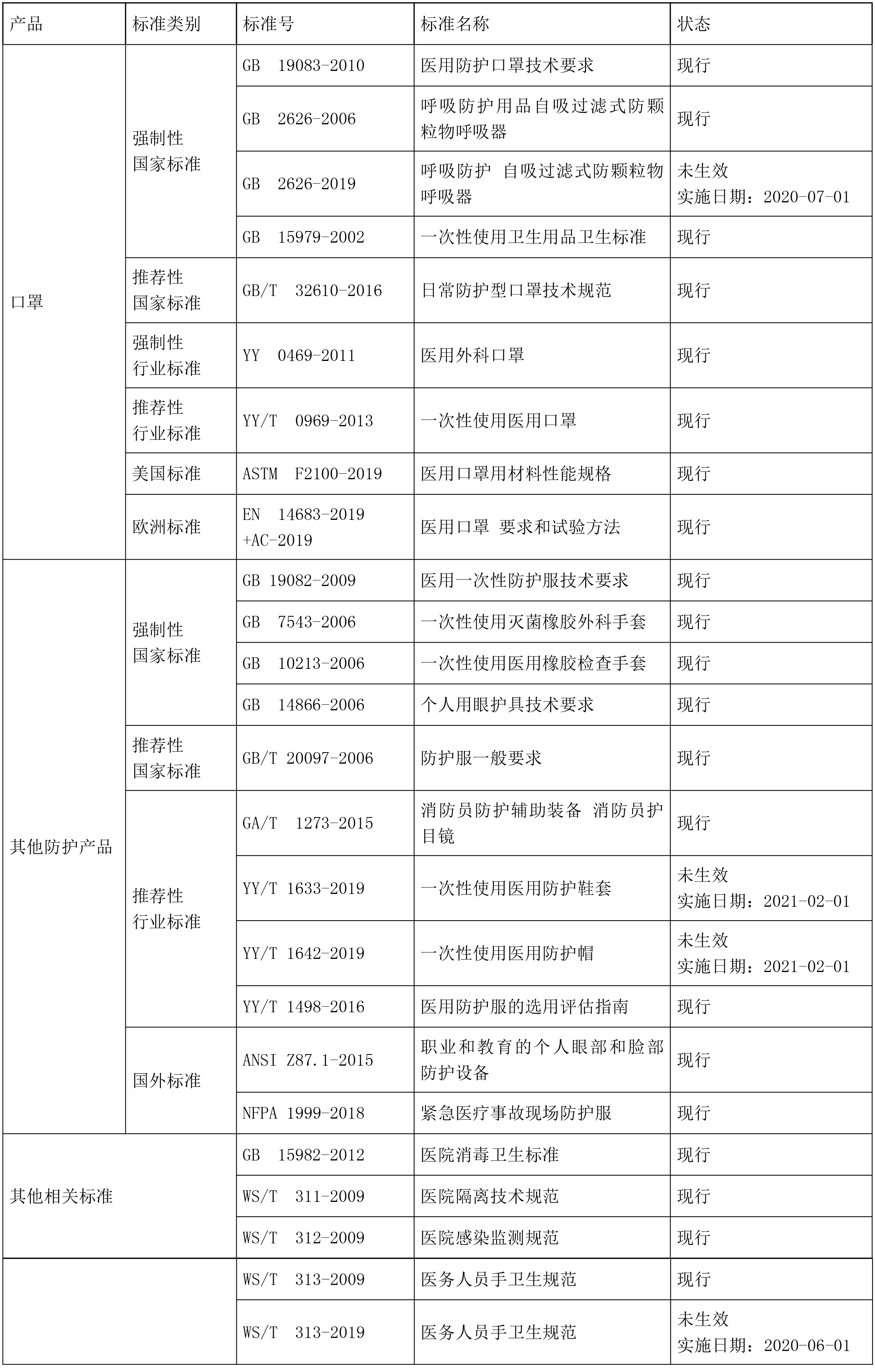 附件:口罩、防護(hù)裝備主要標(biāo)準(zhǔn)清單