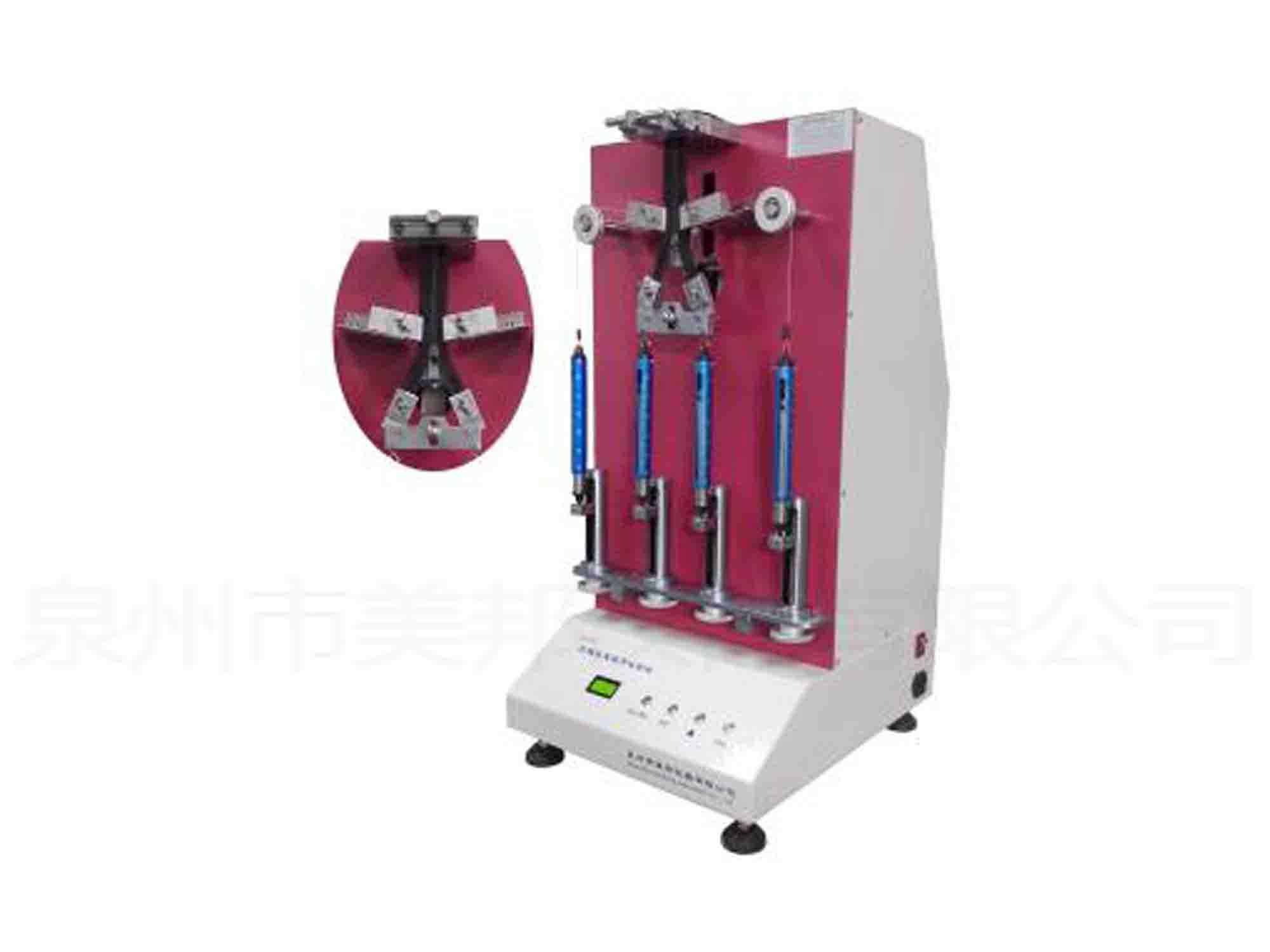 This machine is used to test whether zip fastener can bear reciprocating operation with specified number of times under the action of transverse and longitudinal tension, during the test, the machine drives the zipper head with constant speed for 30 times per minute to specified times.