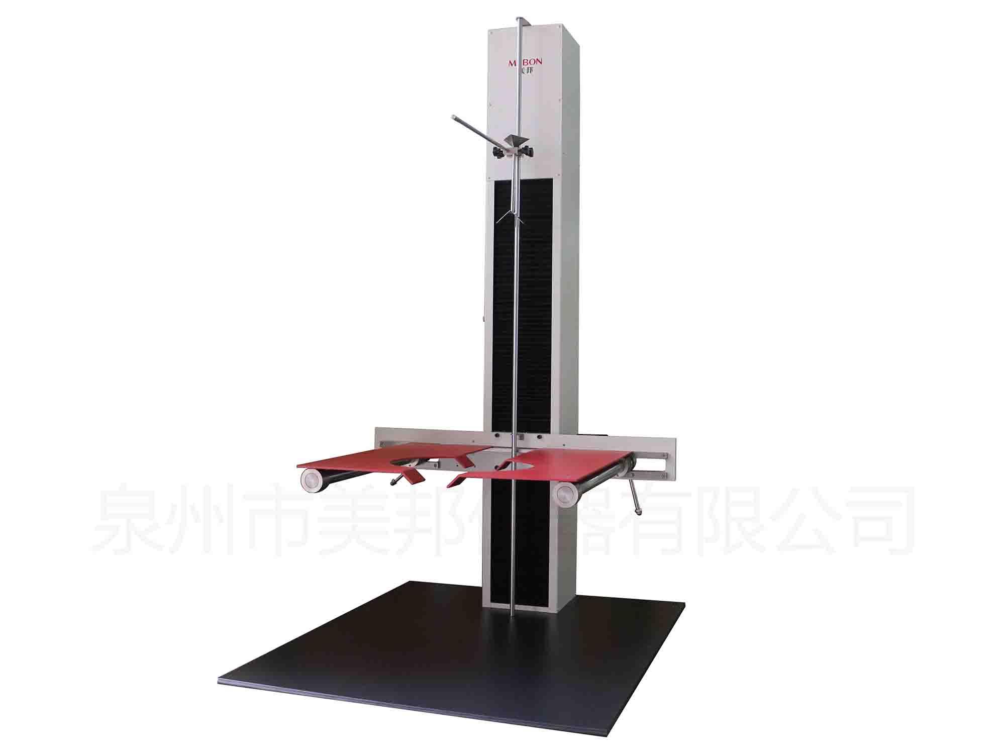 This machine will contain provisions bearing specimen to the specified height after let it drop, the specimen impact oscillation, the test sample box (package body), box, fasteners, connectors, rod, wheel, axle, wheel frame and lock etc. the condition and sample the whole structure the strength.